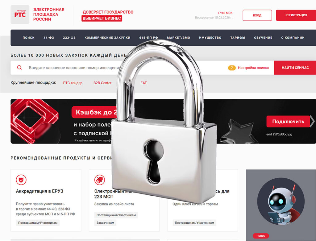 Заявки принимались до 10:00 16 февраля 2026 года. В пятницу 15 февраля, проверяя готовность документов, мы обнаружили, что технический интерфейс площадки ООО «РТС-тендер» блокирует отправку заявки.